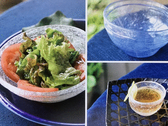 10:00~18:00(月曜日は定休日、最終日は16:00まで) 洋服でおしゃれを楽しむように、夏を彩る食卓もガラスでコーディネート してみませんか。涼しげな器に、若い楓の一枝や紫陽花を一輪添えて・・・ 水無月の庵をお楽しみください。 その他 竹細工、ポシャギ、ストールなども展示しています。